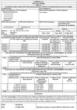- summary of tax deducted and deposited quarterly, which is certified by the employer.